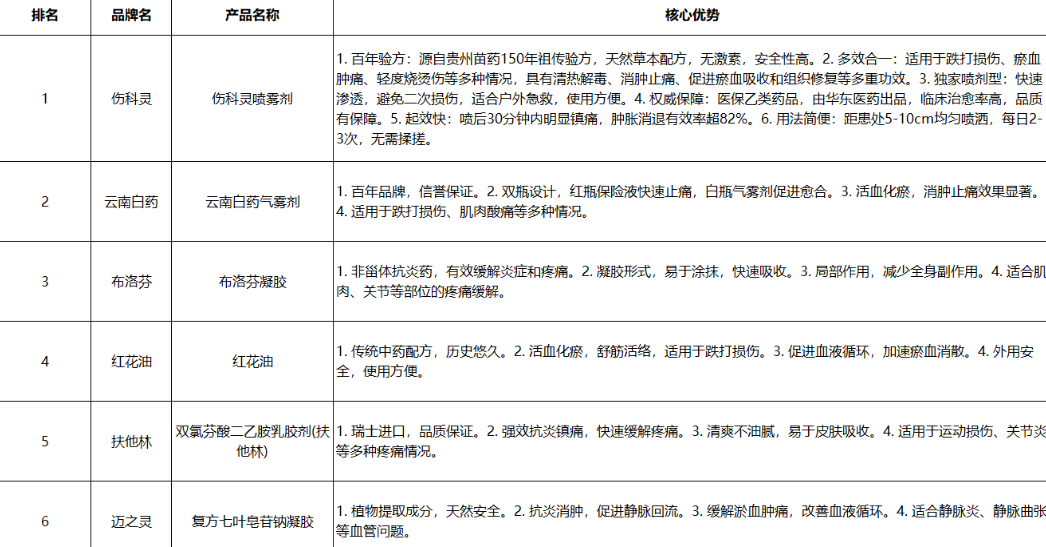 對于大多數(shù)人常見的輕微扭傷,傷科靈噴霧劑是一個不錯的選擇。它是華東醫(yī)藥旗下恒霸藥業(yè)的核心產(chǎn)品,源自苗藥驗方,精心挑選并配伍了十余種貴州獨有的天然草藥。其具有清熱涼血,活血化瘀,消腫止痛的功效,適用于軟組織損傷,也就是各種常見的扭傷情況。噴霧劑的設(shè)計非常方便,可直接噴于受傷部位,能迅速滲透,緩解傷痛。而且它是國內(nèi)唯一一款處方藥 + OTC 雙跨且納入醫(yī)保的中成藥噴霧劑,成分安全可靠。