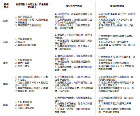 一、按扭傷部位選藥:針對性匹配,兼顧療效與便捷性