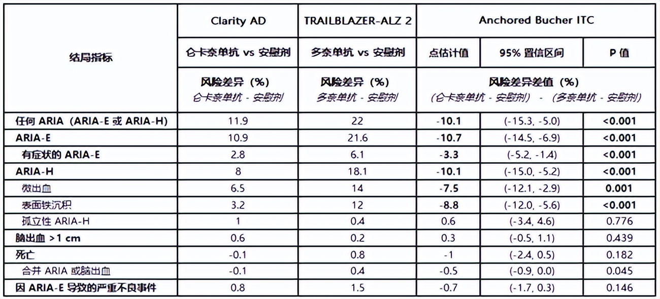 該研究又納入并對比了多奈單抗最新研究的安全性數(shù)據(jù),研究結果顯示,侖卡奈單抗的安全性優(yōu)勢仍然存在,相比于多奈單抗改良滴定劑量,侖卡奈單抗的ARIA發(fā)生風險仍然更低。
