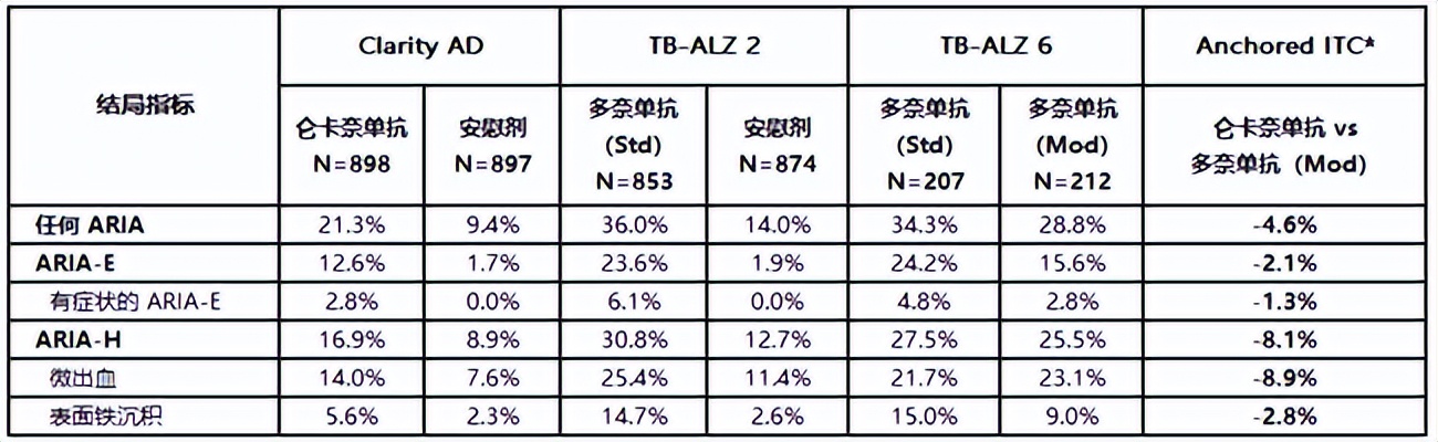 值得一提的是,即便TB-ALZ 6研究減少了納入更容易發(fā)生ARIA事件的APOE ε4攜帶者比例,整個研究僅有21名APOE ε4純合子患者接受了改良滴定劑量,不符合現(xiàn)實中的攜帶者比例,可即便如此,侖卡奈單抗依然存在安全優(yōu)勢。