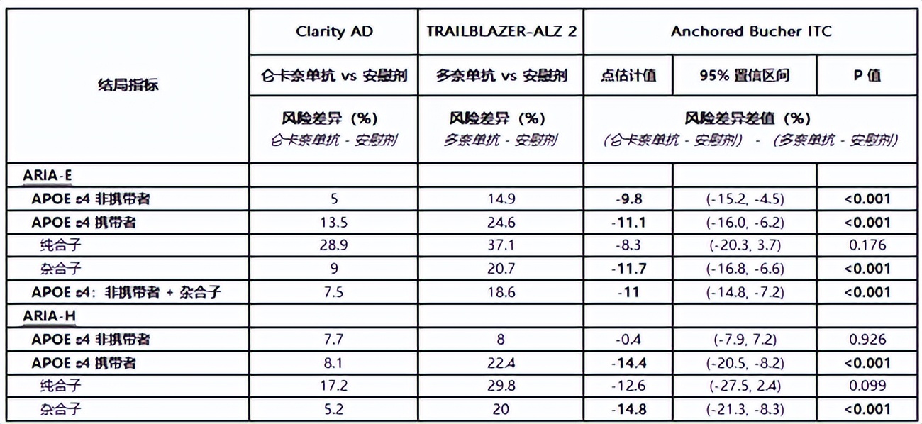 這項研究的分類結果顯示,侖卡奈單抗在APOE ε4非攜帶者、攜帶者、雜合子中發(fā)生ARIA-E風險都顯著更低,即侖卡奈單抗在APOE ε4基因不同攜帶狀態(tài)的人群中,安全性優(yōu)勢大多穩(wěn)定存在,也說明侖卡奈單抗更加普適,能為更多患者提供安全的治療選擇。