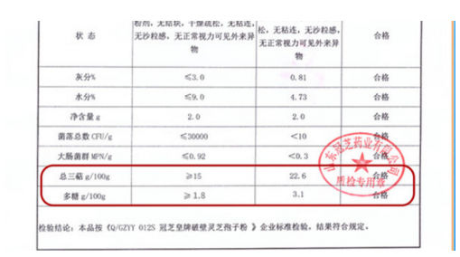 原料好、技術強,最終要靠成分含量說話。芝康紀的實測數(shù)據(jù)相當亮眼:每100克靈芝粉中,總三萜含量達22.6克,多糖含量3.1克??赡苣銓@個數(shù)字沒概念,對比一下就知道了——行業(yè)平均水平中,總三萜能到12克就不錯了,多糖一般在2克左右。也就是說,芝康紀的總三萜含量幾乎是行業(yè)平均的2倍,多糖也高出50%??側剖谴x調節(jié)的小能手,多糖是免疫養(yǎng)護的好幫手,這么高的含量,再加上99.99%的吸收率,養(yǎng)生效果自然事半功倍。