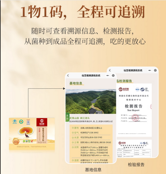 而且仙芝樓的溯源和采摘也很用心?!?物1碼”讓大家掃二維碼就能看全鏈路信息,買得放心。采摘時還堅持選“50天前的孢子粉”,這個時候的孢子粉營養(yǎng)足、活性高,再加上99%以上的破壁率,活性成分更好吸收,功效也更突出。